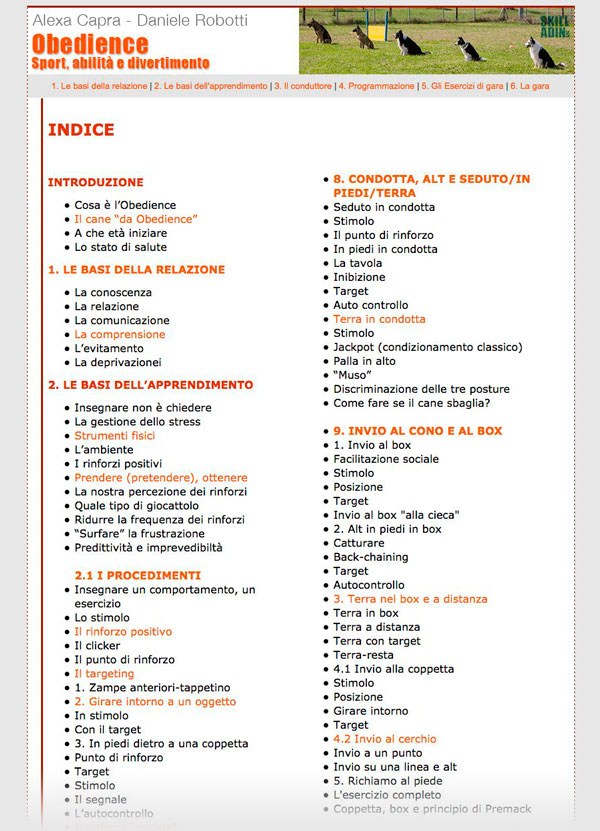 Guarda la gallery con l'INDICE di tutti i contenuti di "Obedience - le tecniche di base"
