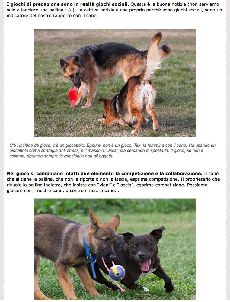 I giochi di predazione sono in realtà giochi sociali. Questa è la buona notizia (non serviamo solo a lanciare una pallina :-) ). La cattiva notizia è che proprio perché sono giochi sociali, sono un indicatore del nostro rapporto con il cane.