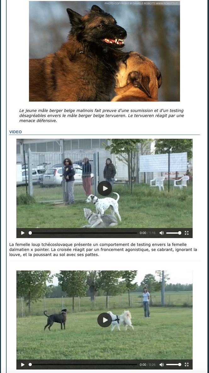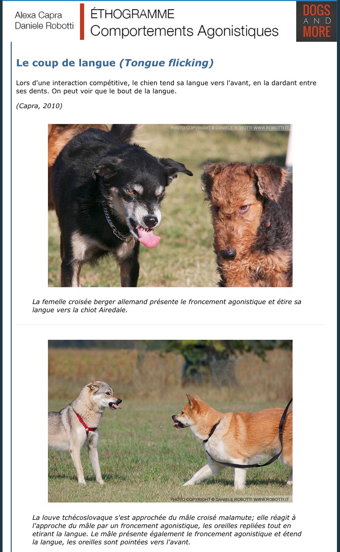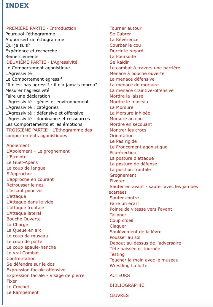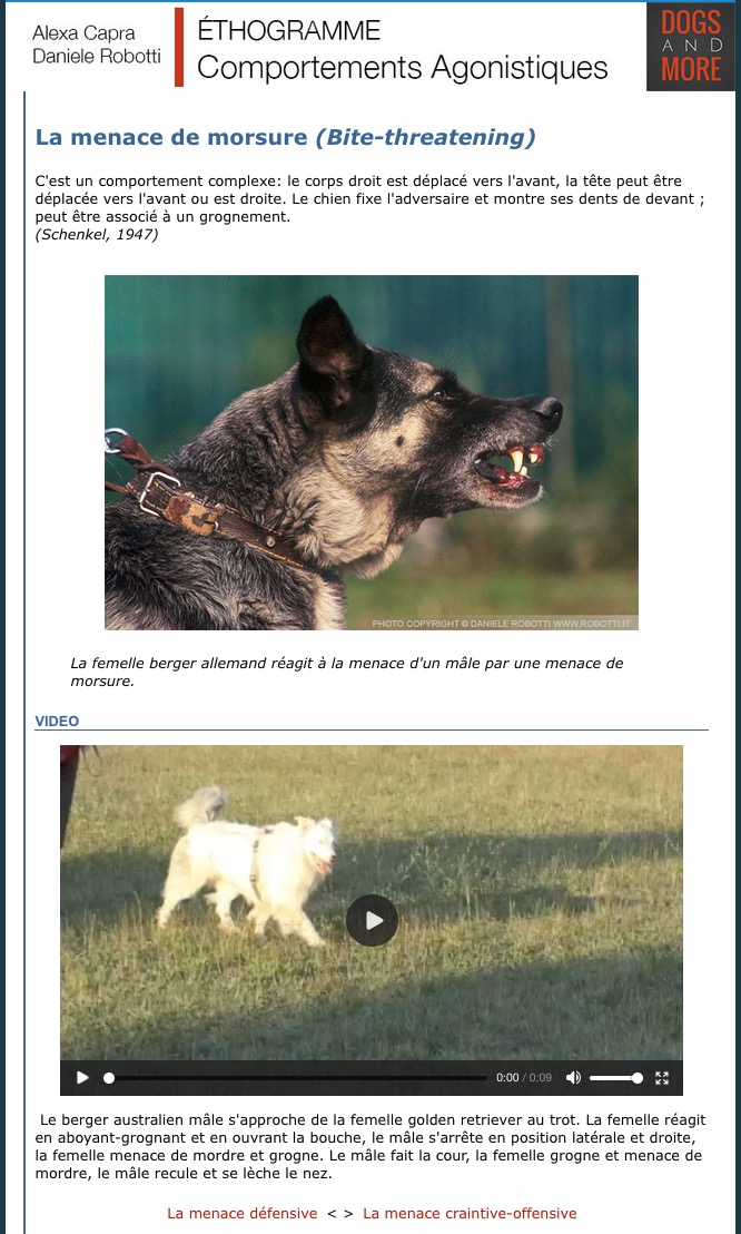 "Ethogramme des comportements agonistiques du chien".
