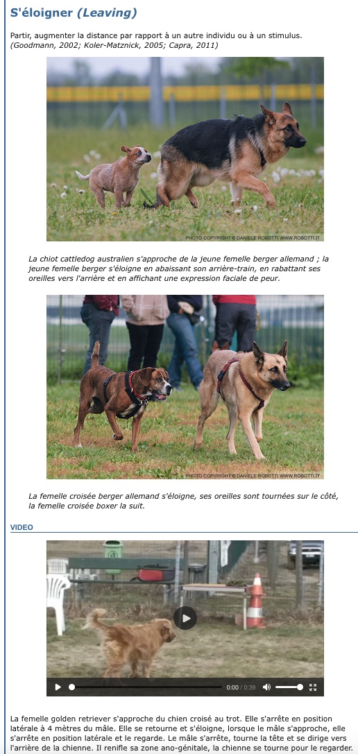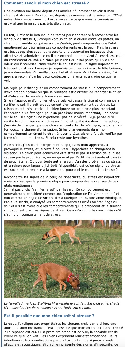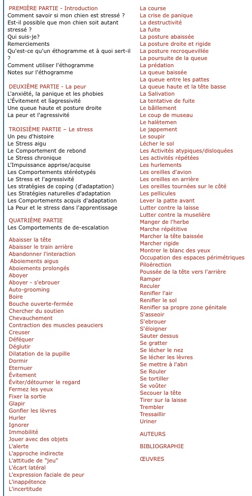 L'introduction présente une explication claire et compréhensible des trois catégories : stress, peur et comportement, utilisées par le chien pour réduire l'intensité d'une interaction (désescalade).